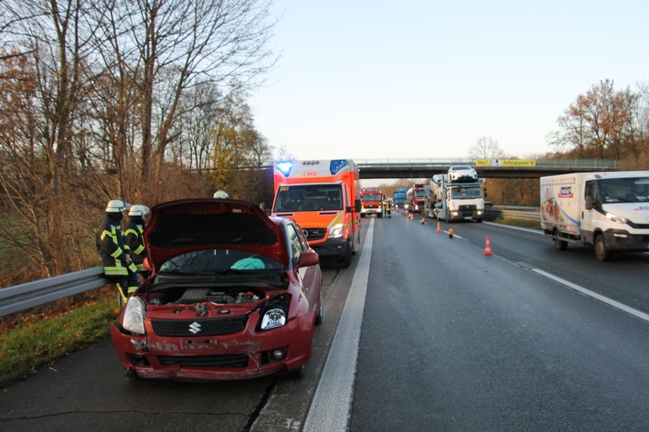 Am späteren Freitagnachmittag um 15:22 Uhr wurde der Löschzug 1 Stadtmitte erneut mit dem Stichwort:“Verkehrsunfall 1 verletzte Person“ auf die A1 in Fahrtrichtung Köln alarmiert. Es war zu einem Auffahrunfall zwischen einem Citroen und einem Suzuki auf dem linken Fahrstreifen gekommen. Die Einsatzstelle lag dieses Mal jedoch ca. 300m vor der Anschlussstelle Hamm Bockum Werne in Fahrtrichtung Köln. Hierbei wurde eine Person leicht verletzt. Die Rettungswagenbesatzung und der Notarzt aus Werne versorgten bereits eine verletzte Patientin auf dem Standstreifen und brachten diese zur weiteren Untersuchung in ein nahe gelegenes Krankenhaus. Die Aufgaben der Feuerwehr beliefen sich ähnlich wie bei dem ersten Einsatz ca. eine Stunde zuvor. Für die Dauer der Rettungs- und Bergungsarbeiten wurde die rechte Fahrbahn in Richtung Köln für circa 30 Minuten gesperrt. Desweiteren an diesem Einsatz beteiligt, war ein Streifenwagen der Autobahnpolizei, der Rettungsdienst und Notarzt aus Werne. Von der Freiwilligen Feuerwehr aus Werne waren 22 Einsatzkräfte mit vier Fahrzeugen im Einsatz. Einsatzende konnte der Leitstelle in Unna um 16:22 Uhr gemeldet werden.